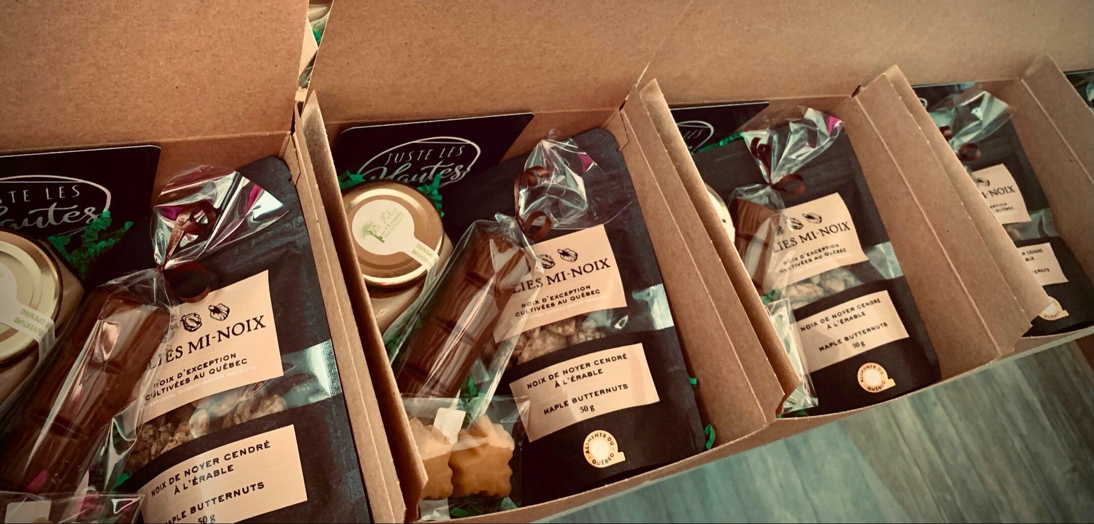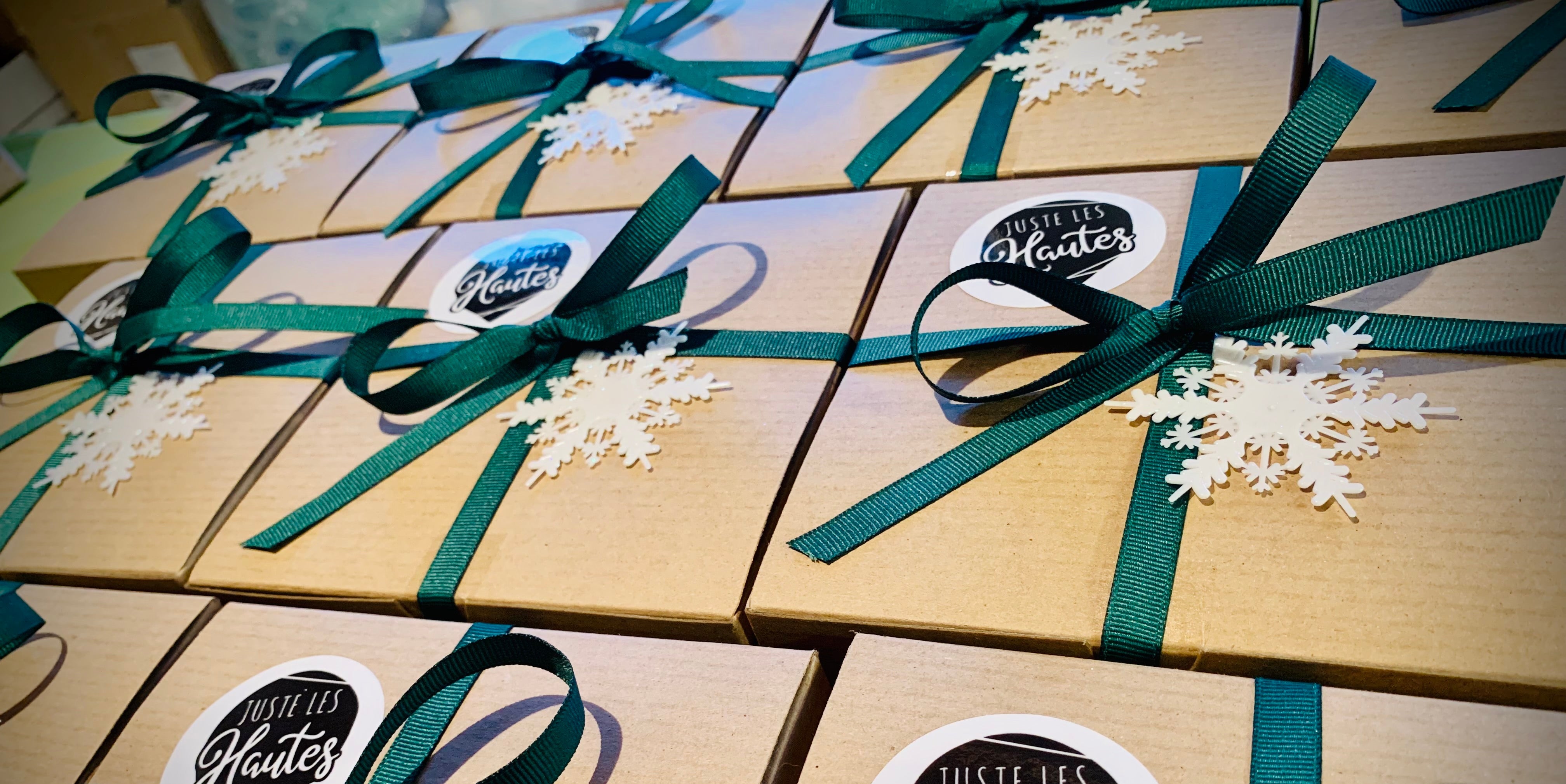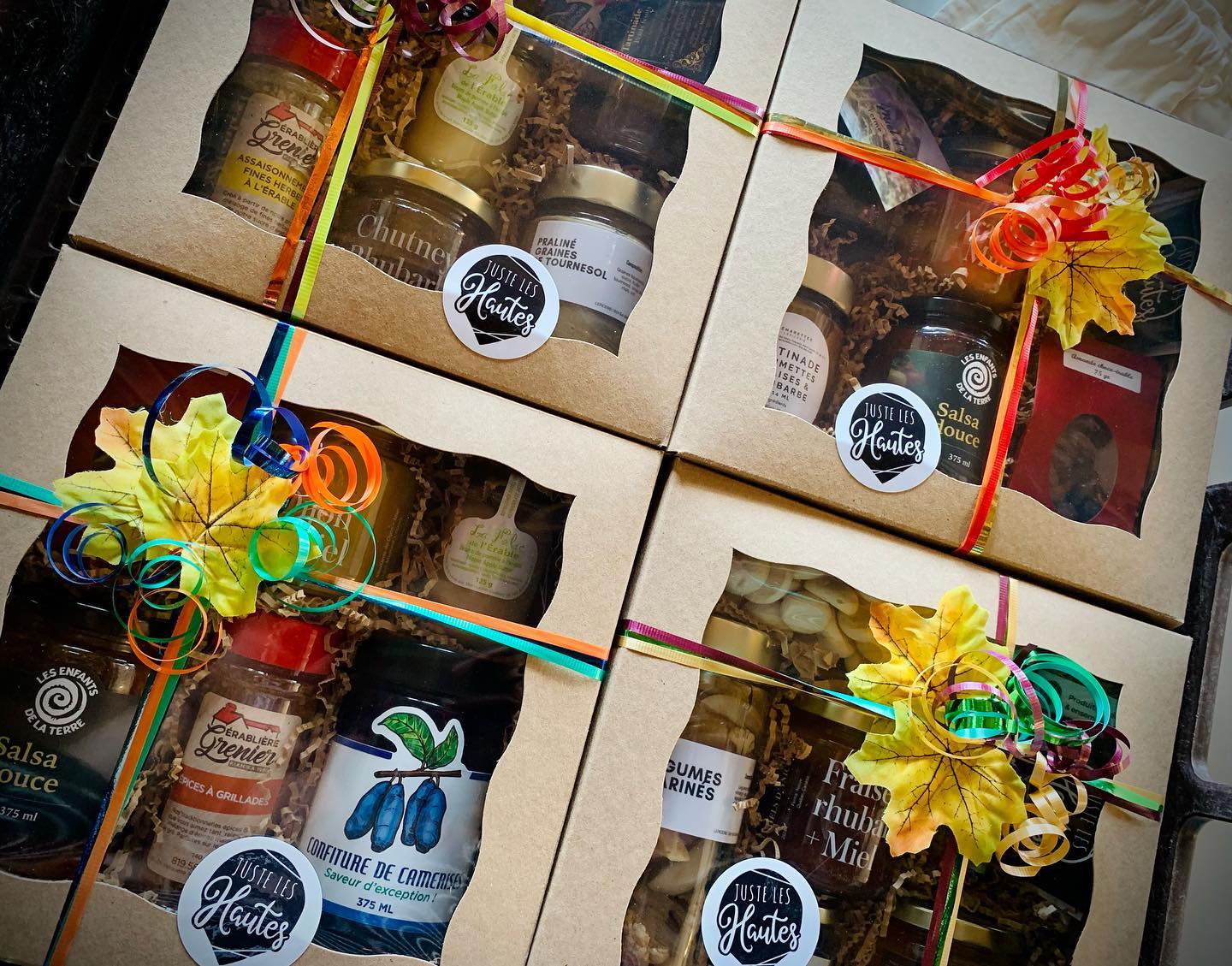 Nos coffrets-cadeaux regroupent exclusivement des produits conçus dans les Hautes-Laurentides. Chaque assemblage est préparé sur mesure et décoré avec soin pour plaire à chacun des membres de votre équipe. Vous pourrez même y faire ajouter un message personnalisé!